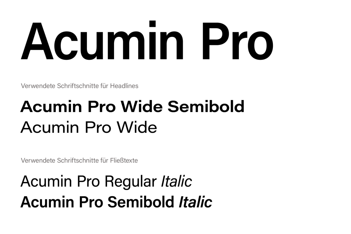 Für Fließtexte wird die Acumin Pro im Schriftschnitt Regular verwendet.